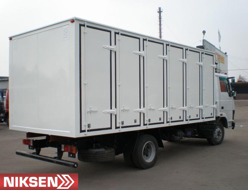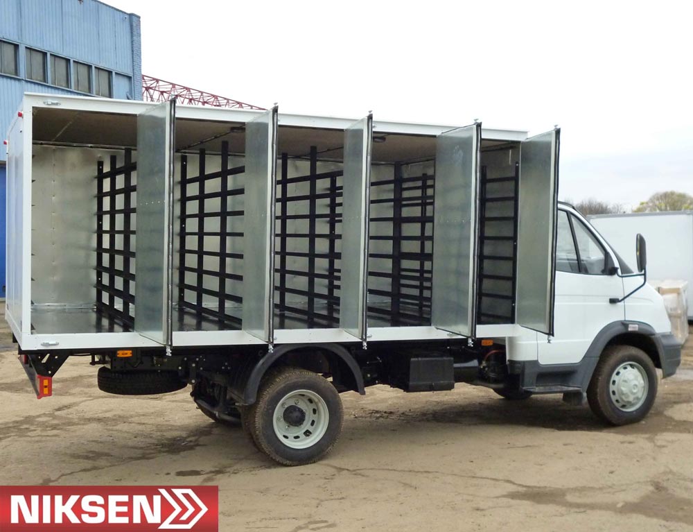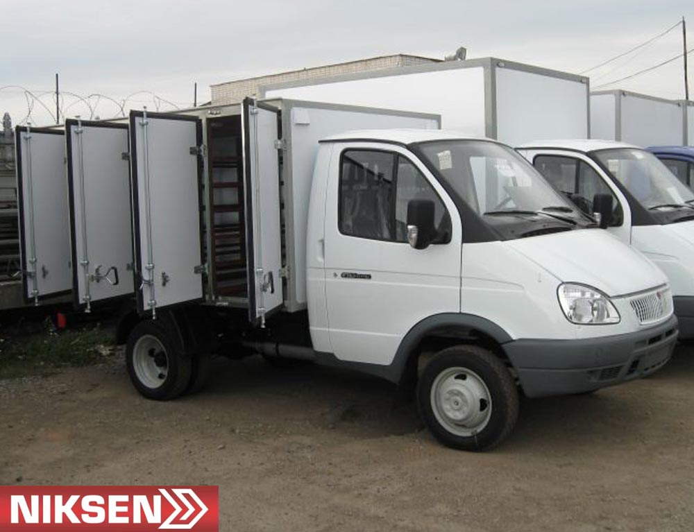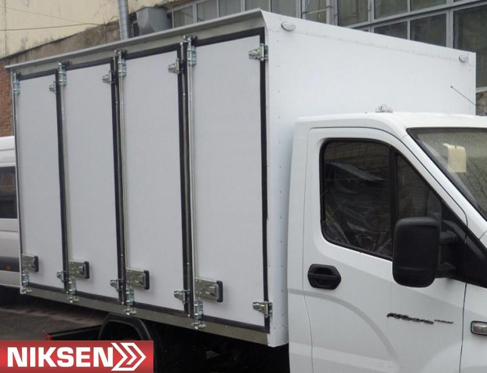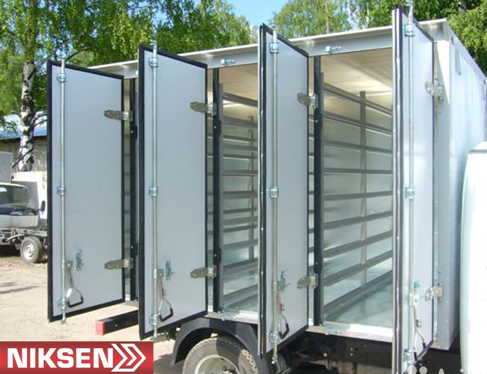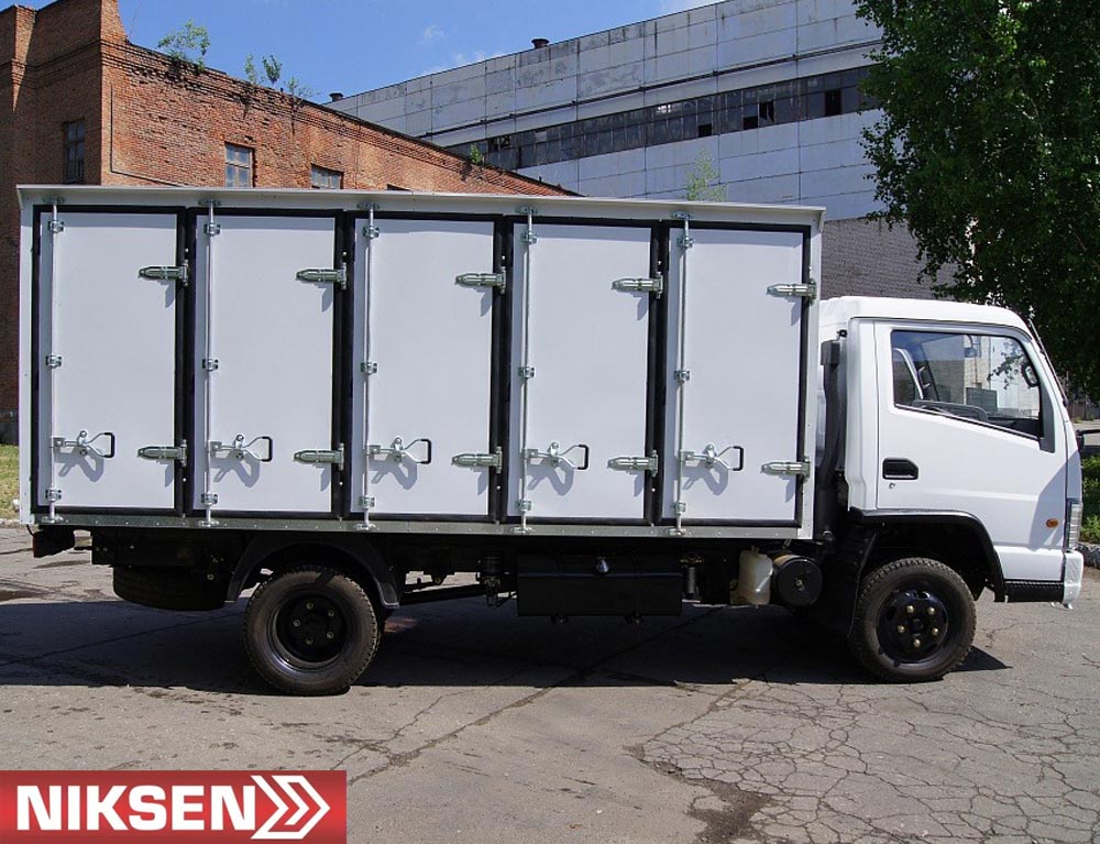 Кузов-фургон имеет прямоугольную форму с боковыми одностворчатыми распашными дверьми. Возможны варианты габаритных размеров кузова, количества дверей и лотков по индивидуальному заказу. Фургоны оборудуются габаритными огнями и фонарем внутреннего освещения. Устанавливаются на шасси отечественных и импортных производителей.