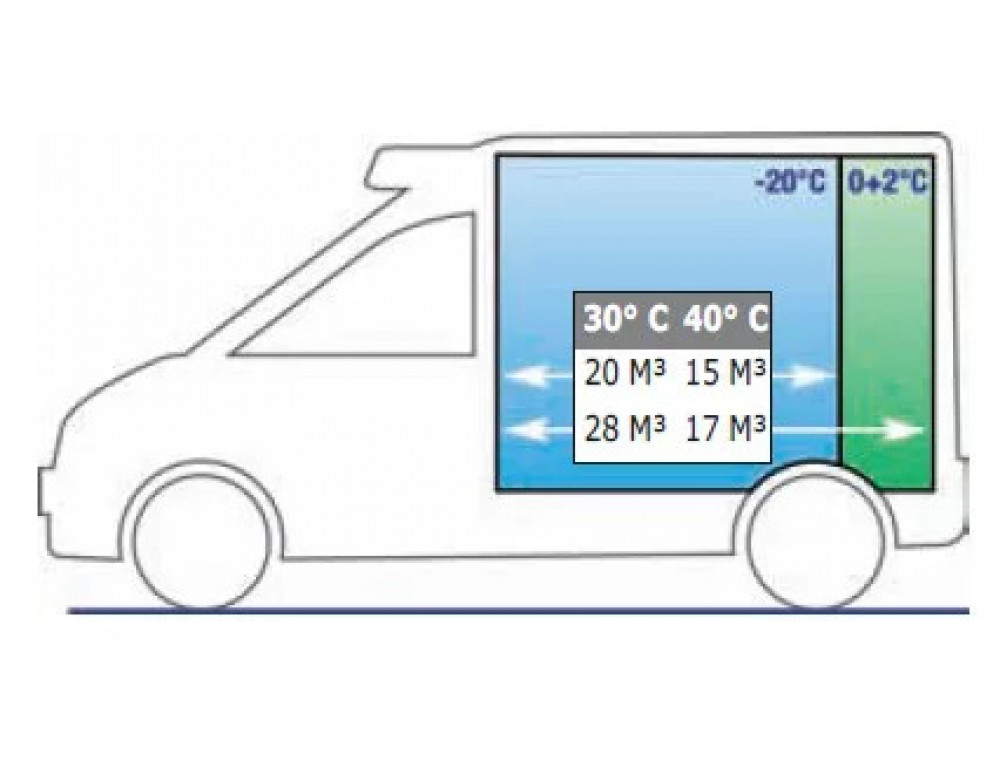 | Холодопроизводительность в дорожном режиме при -20°C/+30°C | 1930 Вт |