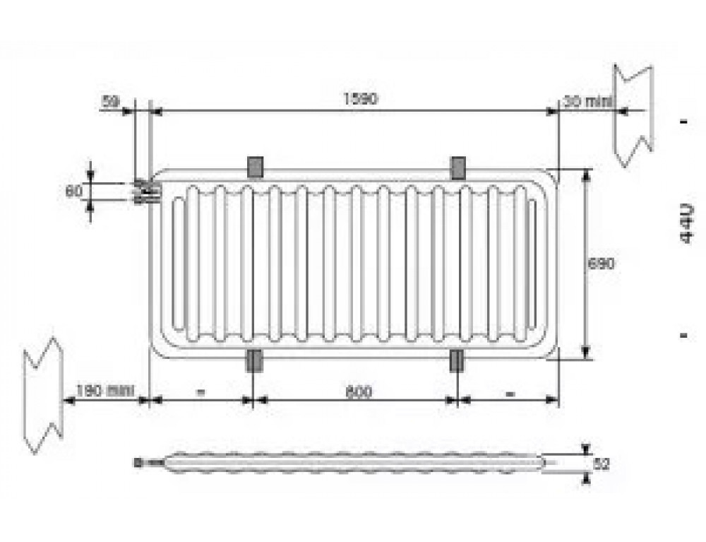 Толщина плиты: 52 мм.